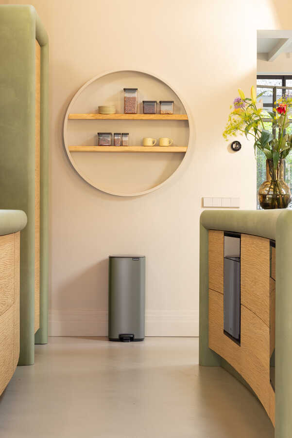 *30 litrelik geniş hacmi ve zarif görüntüsüyle duvar dibinde kullanıma uygundur ve ekstra yer kaplamaz.