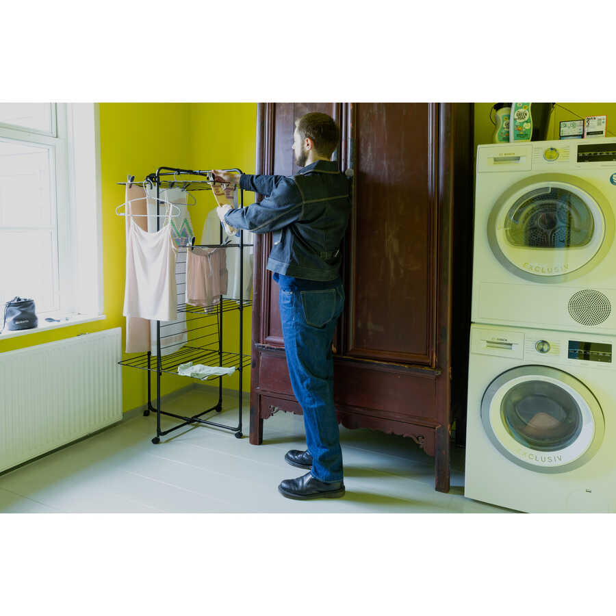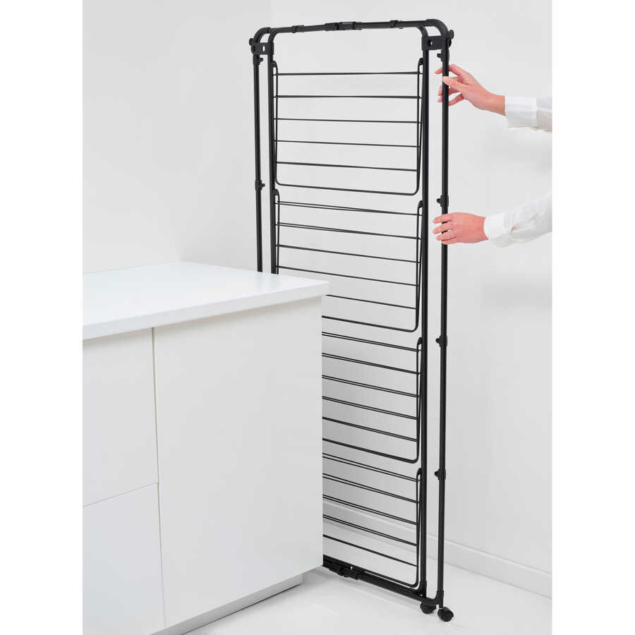 *Esnek kurutma alanı , ekstra kancalar ve elbise askı ları için tutucular sayesinde minimum yer kaplar. *30 metre kurutma alanı ve ö zel askı kancaları ile Brabantia HangOn Tower Kurutma Askı sı üç makine dolusu çamaşı rı tek seferde kurutmanı zı sağ lar. * Telleri arası ndaki ekstra boş luk sayesinde çamaşı rlar daha hı zlı kurur. Havlu gibi daha büyük eş yalar için idealdir. *Her ş ey kuruduktan sonra, saklamak için kolayca düz bir ş ekilde katlayabilirsiniz.