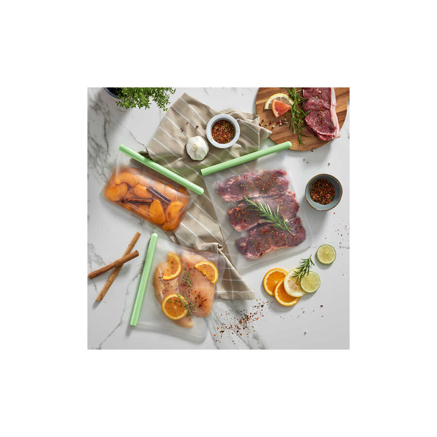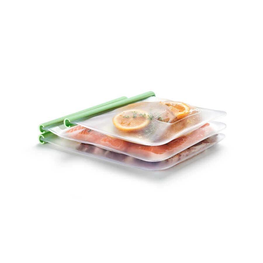LEKUE YEŞİL 3LÜ YENİDEN KULLANILABİLİR SİLİKON DÜZ SAKLAMA POŞETİ SETİ